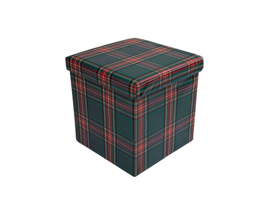 Pouf contenitore in similpelle, tartan